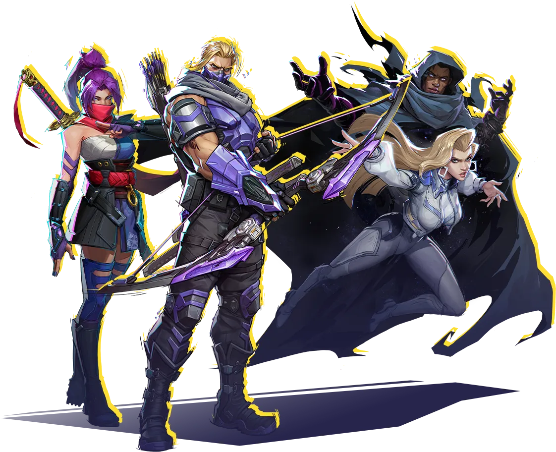 Cloak & Dagger share light and dark energy with Hawkeye and Psylocke. When Hawkeye uses Crescent Slash, he also releases a blade wave that heals and boosts healing for teammates, while inflicting damage and Vulnerability on enemies. Psylocke can launch a Light Boomerang Dart that heals allies, harms enemies, and provides her with temporary healing upon return. She can also unleash a ring of Dark Darts that slow enemies while she briefly enters a Phased state.